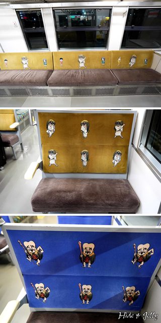彩繪列車中的座椅,也都有該列車主角的各種樣貌,蠻可愛的。