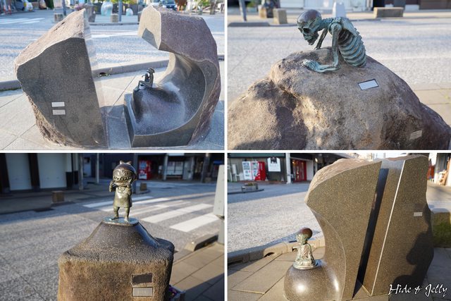 銅像或石像,都是鬼太郎世界或日本傳說中的妖怪,有些銅像很大,有些小小的,靠近車