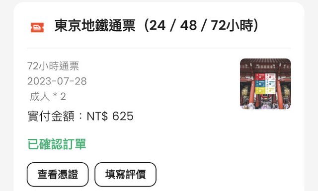 標題[讓售] 東京地鐵72小時兌換券 成人2張