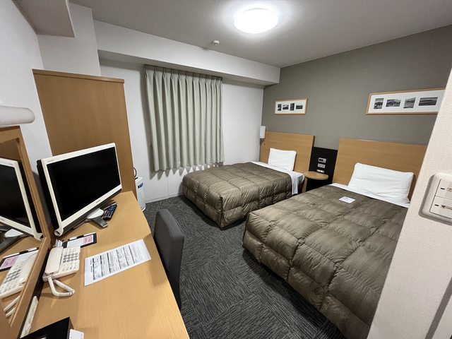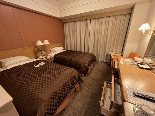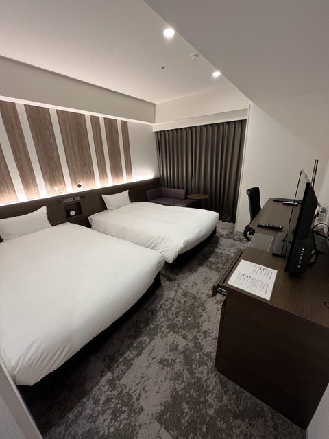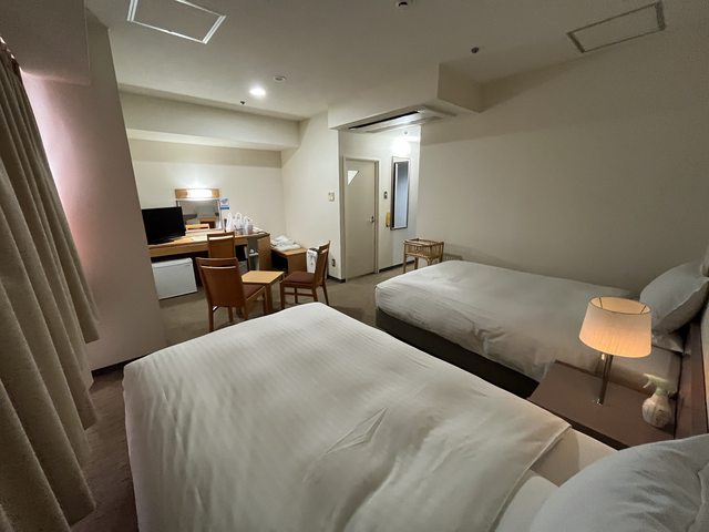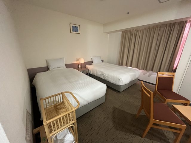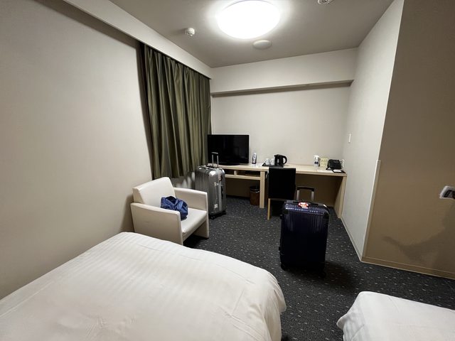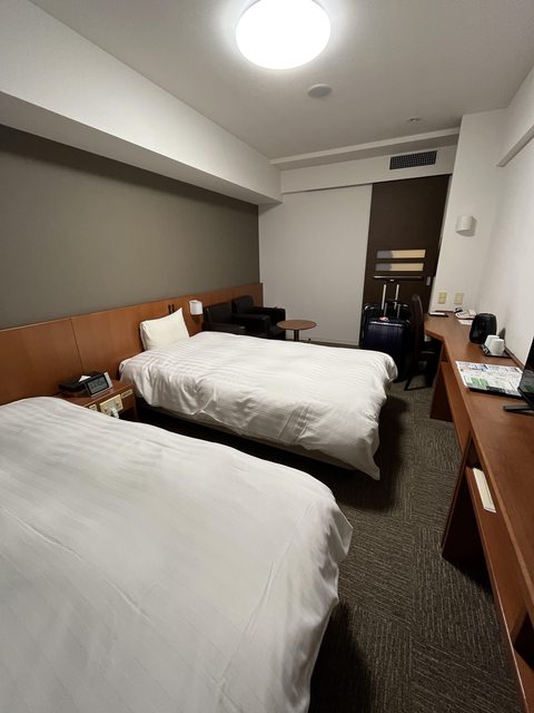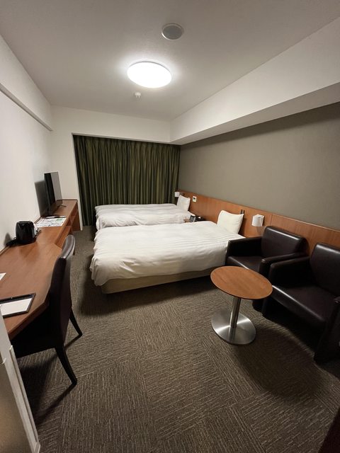 優點:雙床房寬敞但比盛岡的小一些、離機場巴士站超近