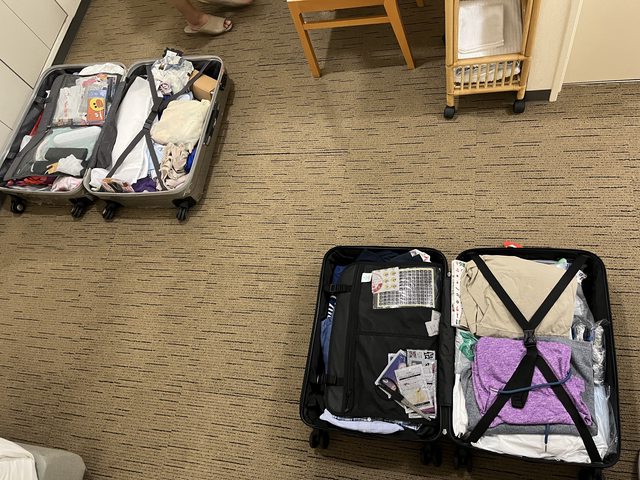 缺點:冷氣口直接對著頭吹,設計不良、雙床房型不大,攤開一大一中行李箱後就沒有地