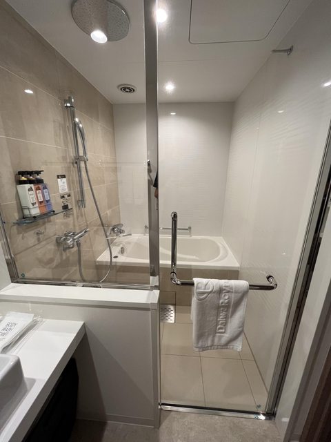 優點:飯店新穎、雙床房間寬敞舒適、可透過智慧電視獲得洗烘衣機使用資訊及早餐人潮