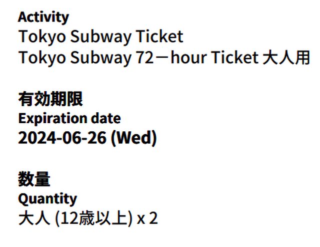 標題[讓售] 東京地鐵通票72小時*2張 (qr code)