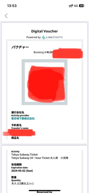 標題[讓售] 東京地鐵通票24小時通票*2張