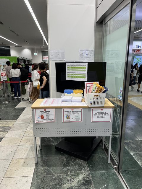 櫃檯旁邊有印章以及卡片可供旅客使用
