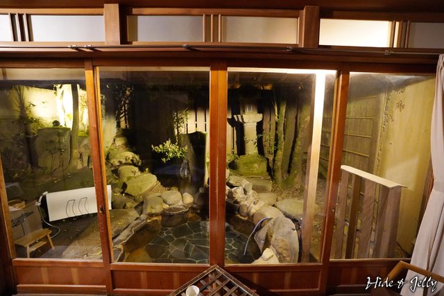 溫泉池旁還有石燈籠造景,石燈籠上的青苔相當茂密,加上一旁建築物的些微斑駁,就算