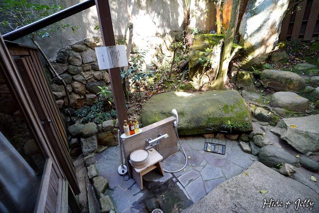 全館僅有一間的庭園房型有自己的溫泉浴池,其餘五間客房,則共用兩間溫泉浴池「玉の