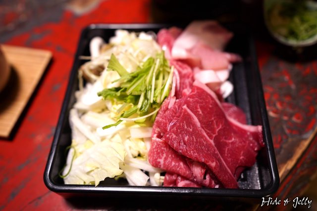 首先,是今晚的鍋物,提供了和牛與奧出雲豬肉片的涮涮鍋。兩種肉大概各4、5片,加上