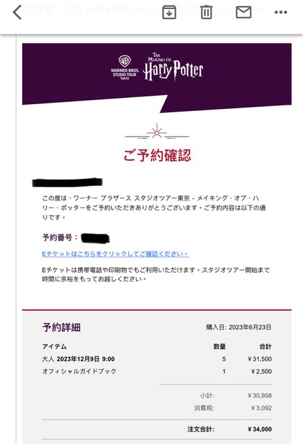 標題[讓售] 東京 12/9 哈利波特影城入場券