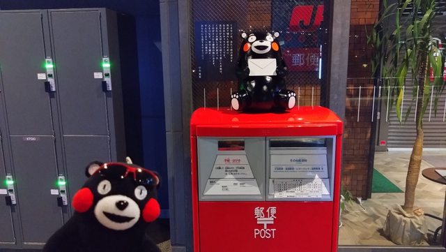 要回水前寺飯店時再到白川口的郵便局熊本熊郵筒拍張照