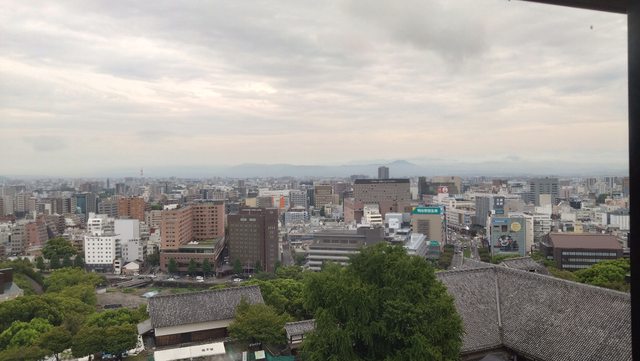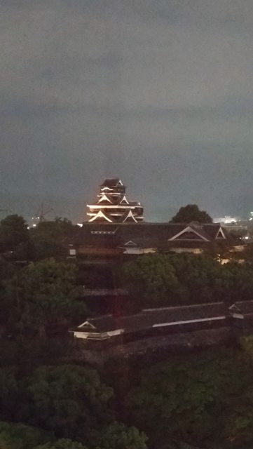 接近19:00百貨也要關門了,且外面天色也黑了,走去一個能看熊本城夜景的地方。