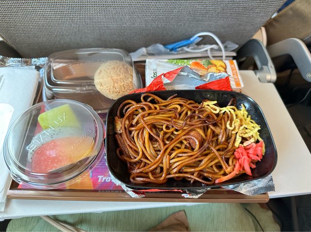 飛往福岡航程不到2小時所以取消星宇特調,也不能選擇飛機餐非常可惜...但豬肉炒麵的