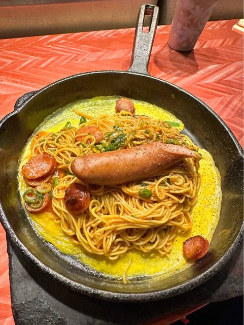 「明麵」原本以為是明太子的拉麵?結果吃起來像是拿埔里肉醬配上乾拉麵加上德國香腸