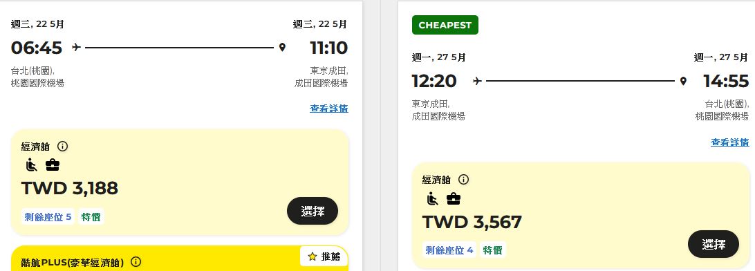 推 MarchelKaton: 3188是怎麼按出來的?我查期間內飛成田單程就要六 09/12 15:56