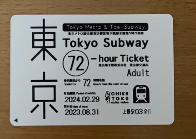 1. 讓售品項:東京地鐵通票72小時券(大人)