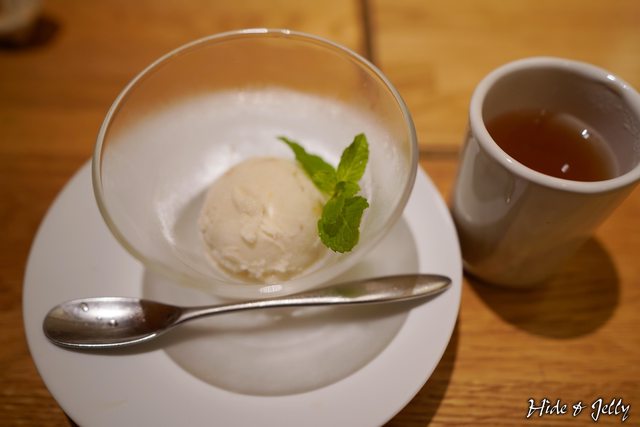 吃完之後,店員會再幫我們上飯後甜點與溫麥茶,今天的甜點是草莓冰淇淋,真不賴