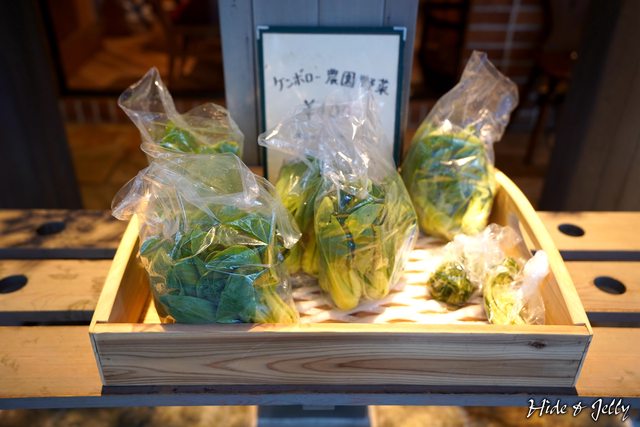 餐廳的門口還販賣著自家農園的野菜,看起來是很新鮮的青江菜,原來「Camborough」的