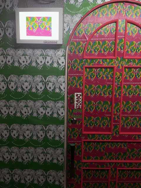 門口壁上貼滿了滿滿壁紙,連個小縫都沒有,要不是跟日友一起來,說真的我還真