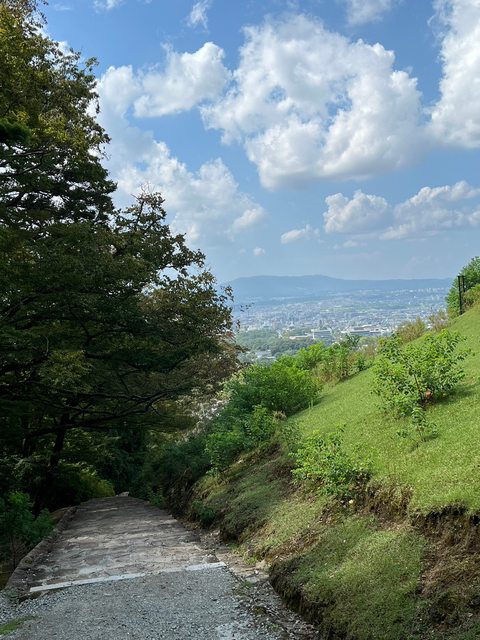 然後一路拚上去三重目之後,沿著陰涼好幾倍的遊山道走到相逢的三叉路口