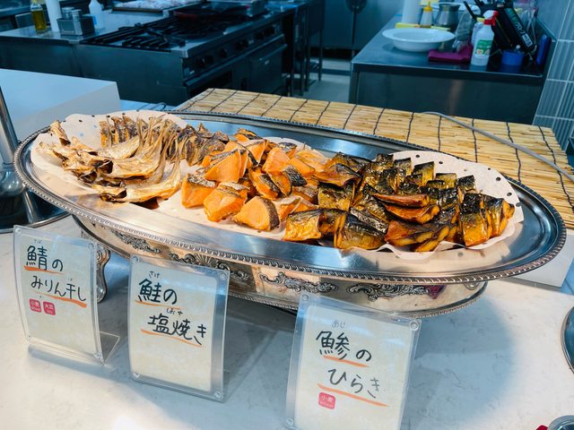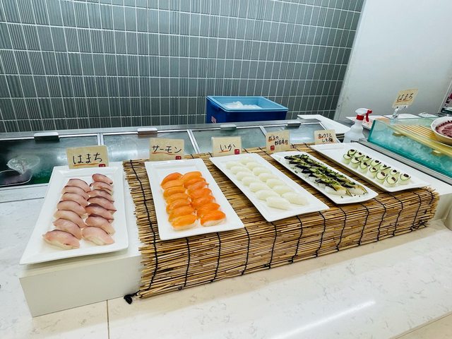 重點是早餐也是上面都有只是少了壽司跟呼子烏賊, 不過多了現捏飯糰