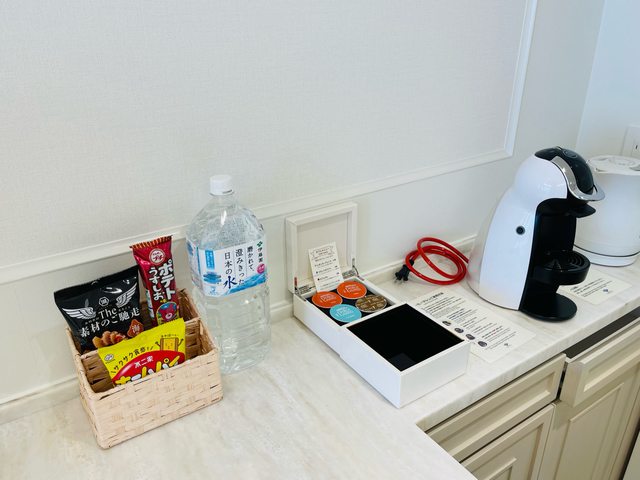 房間有個小吧台餅乾、瓶裝水、咖啡機,冰箱的酒類、飲料全部免費。 (因為入住兩天,第二天吃早餐時也有再補一份吧台、冰箱的飲品、餅乾、咖啡)