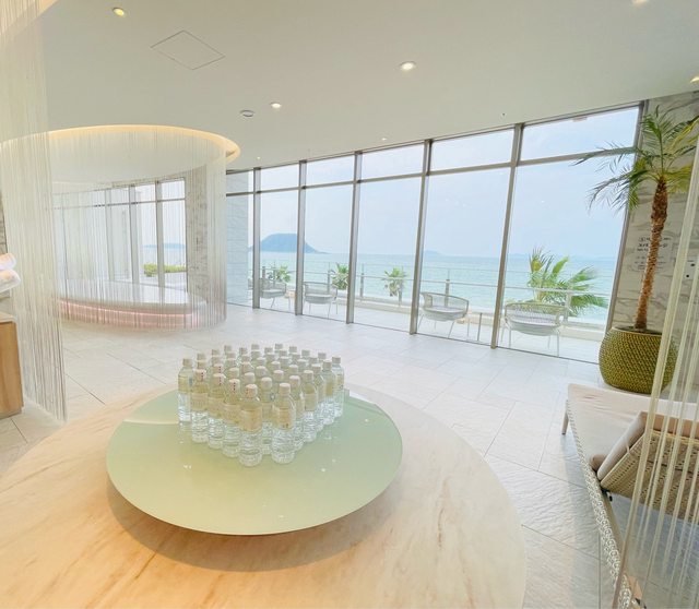 大廳挑高空間採光充足且景觀很好,唐津灣的海景在大廳就能一覽無遺。