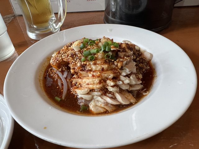 辣辣的刀削麵、口水雞都很香很好吃