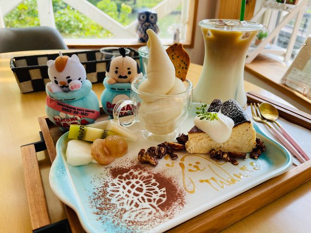 這樣一組是1080日幣,有巴斯克乳酪蛋糕、冰淇淋、水果堅果、飲料。