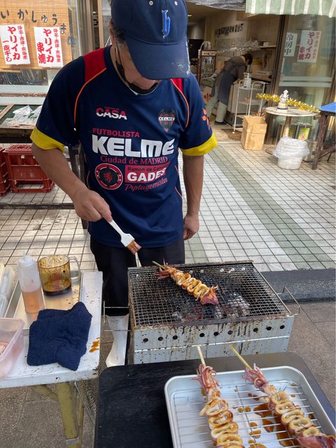 就開始逛朝市通不過不知道是不是那天是禮拜二攤販有些少但還是有吃到烤烏賊。