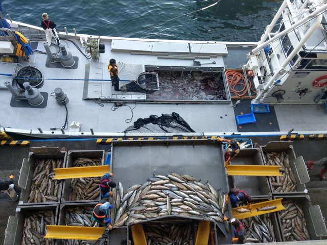 現在是捕鮭魚旺季,會到港口二樓看漁夫們捕魚回來後的作業。