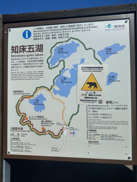 我就在不知道有熊出沒的情況下走完了,還好沒事。如果可以,來走知床五湖步道時還是請