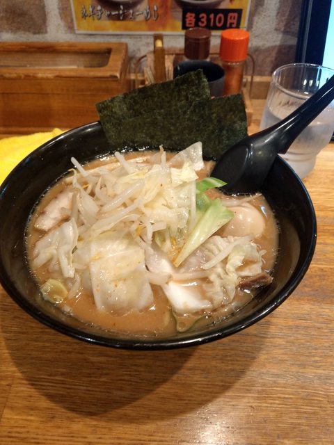 蔬菜叉燒拉麵,麵一半+一顆溏心蛋,可選醬油或鹽味,我選醬油,好吃