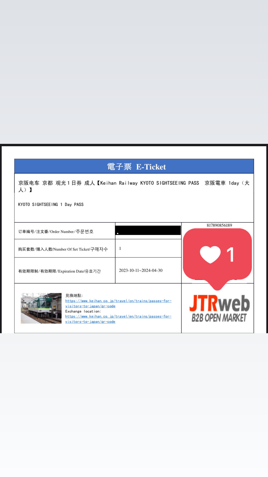 標題[讓售] 讓售京都觀光一日券