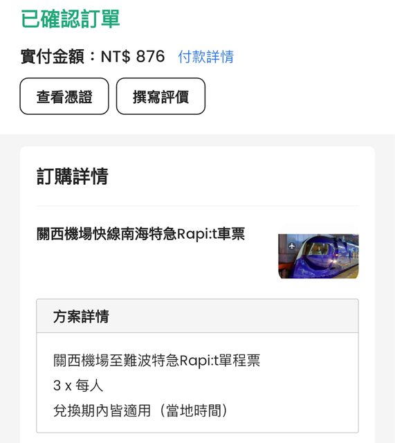 標題[讓售] 南海電車特急Rapit票3張