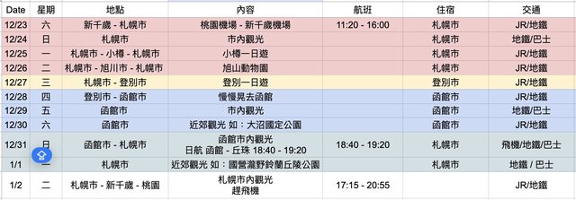 標題[問題] 北海道 十二月底不自駕 十天九夜行程請益