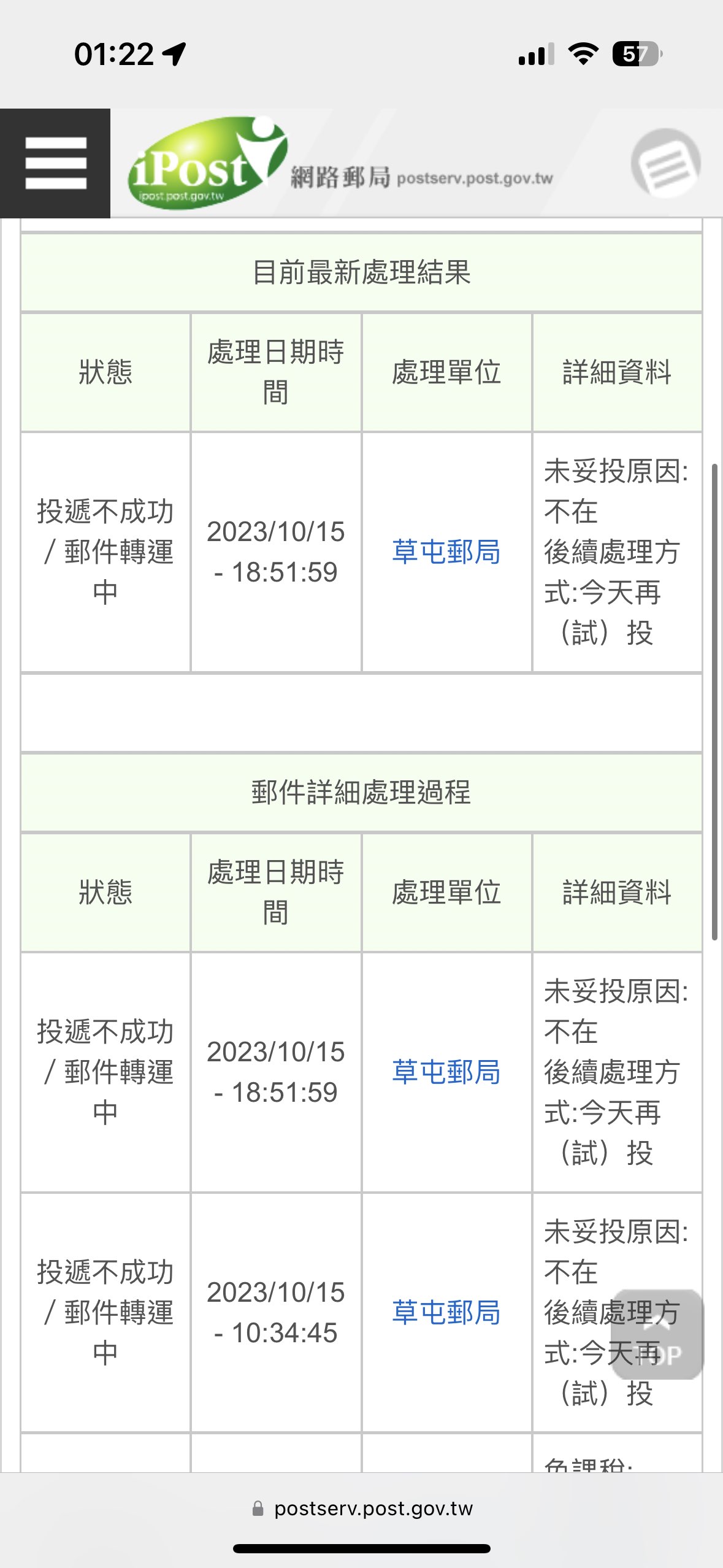 → hy1221 : 台灣郵局網頁就能查貨態了啊 沒投遞成功2次會留單 10/16 00:46