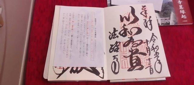 法隆寺御朱印本體,還有附聖德太子相關的一些說明(左邊被紙蓋住的御朱印是東大寺的)