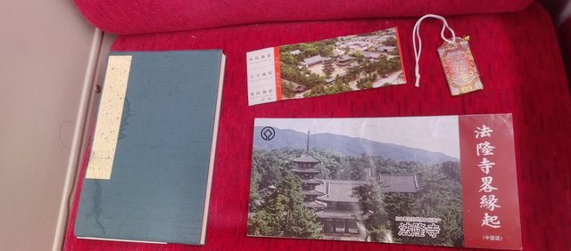 法隆寺御朱印本、聖德太子御守、法隆寺門票和導覽手冊