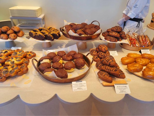 也有人現場排隊。這裡的麵包都有加入GODIVA巧克力或是可可元素,定價不算太貴(價值