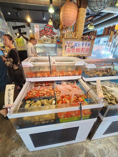 有活鮑魚.榮螺之類的,自己夾再算費用