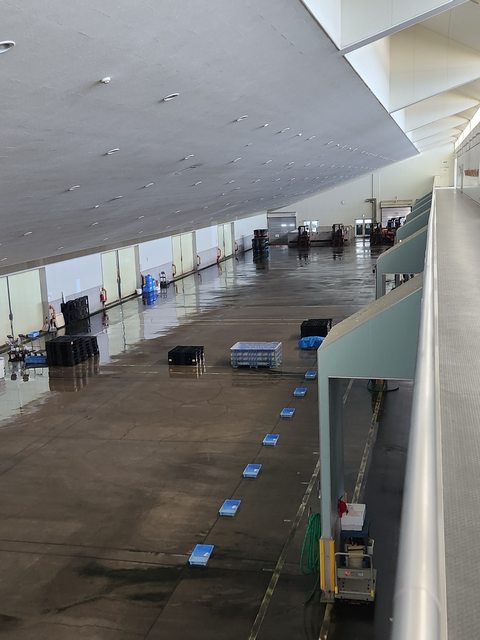 走到水門前會經過魚貨拍賣見學場地,看起來早上六點到十點之間才有拍賣,可從二樓往