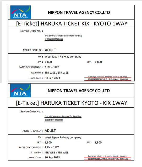 5. 交易方式: 匯款後給憑證,需自行到日本的機器換成實體票後使用。