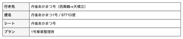 因為赤松號似乎不適用pass,所以我在丹後鐵道(Willer Trains公司)的官網訂到了赤松號的「乘車整理券」(西舞鶴至天橋立,550日圓/人,已付款)。想要請問的是,抵達西舞鶴之後,是否只需要出示此乘車整理券的預約確認書(email,請見附圖2)?