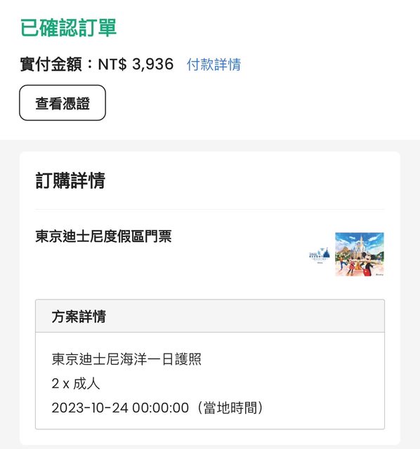 1. 讓售品項:東京迪士尼海洋電子門票一張