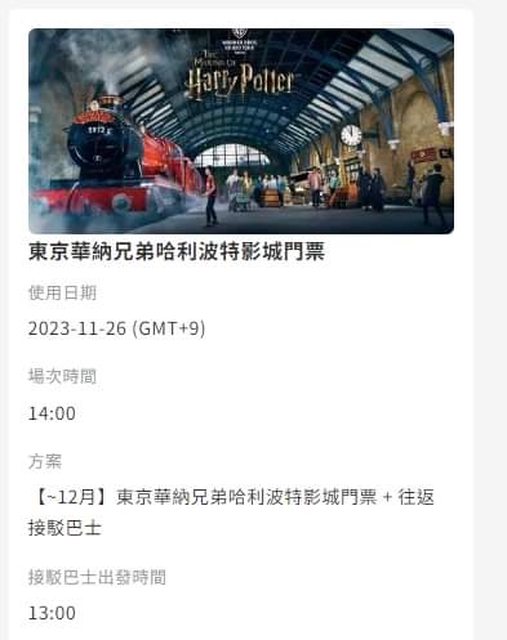 標題[讓售] 東京華納兄弟哈利波特影城門票 1張