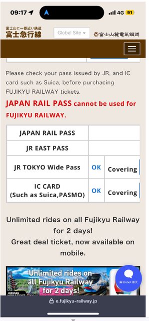 能包含到富士急區間