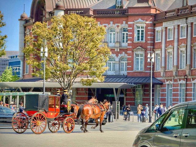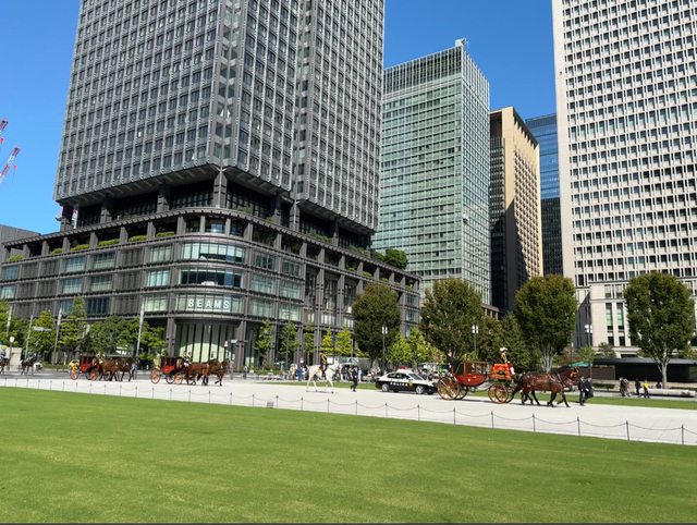 東京最繁忙的車站,結果東京車站中央口,就是通往江戶城(皇居)的方向,所以有人開車