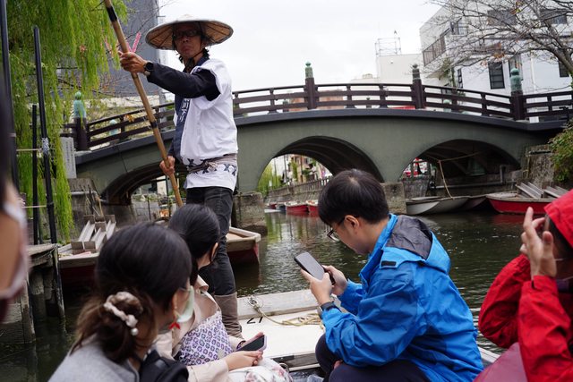 船伕也就開始切換成英文講解模式,並沿途介紹柳川運河旁的建築
