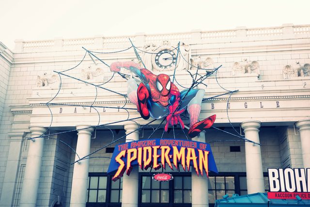 接下來前往搭乘蜘蛛俠驚魂歷險記乘車遊