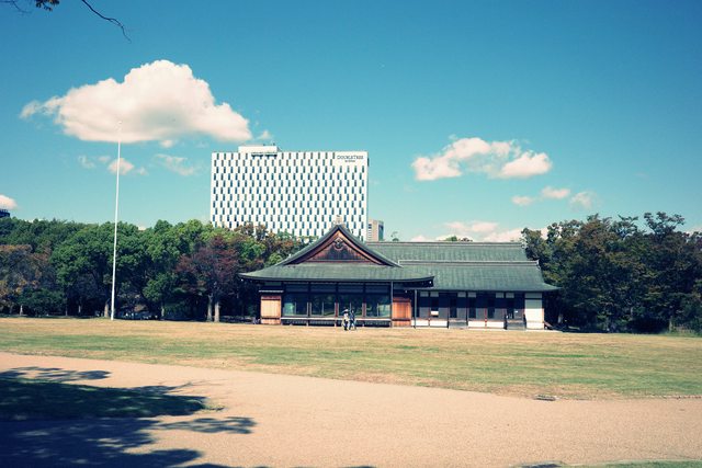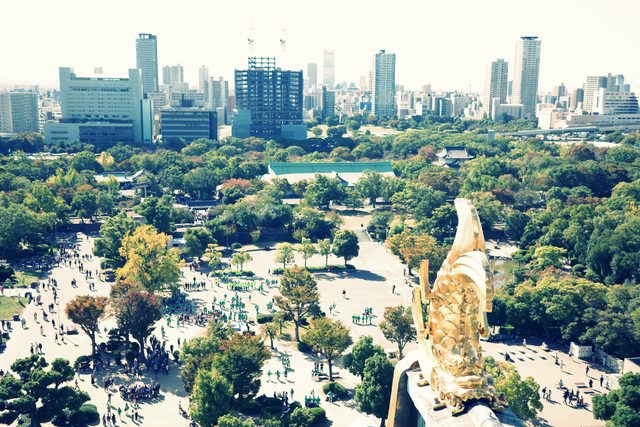 搭車前往森ノ宮駅 一出站就是一整座大阪城公園迎接我們